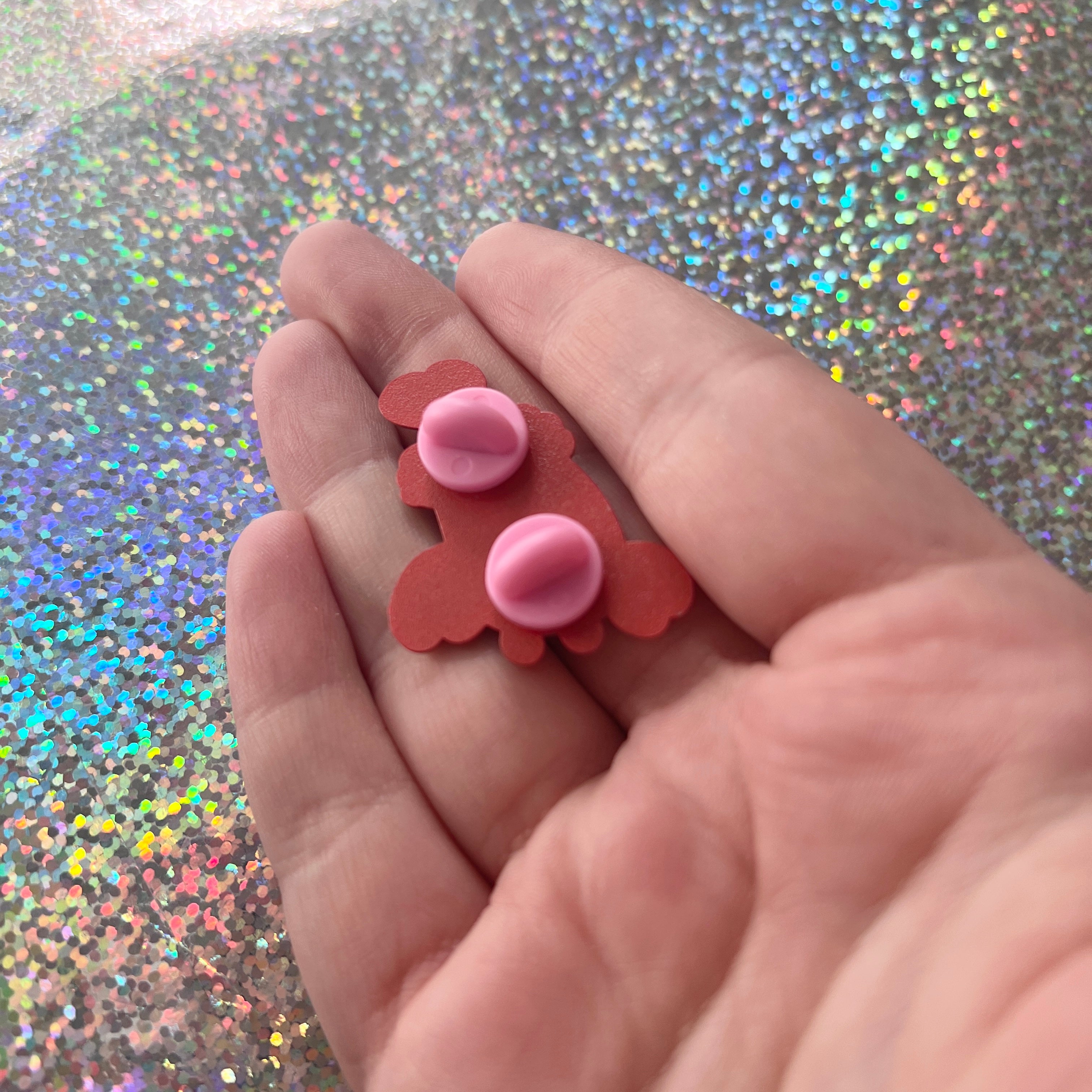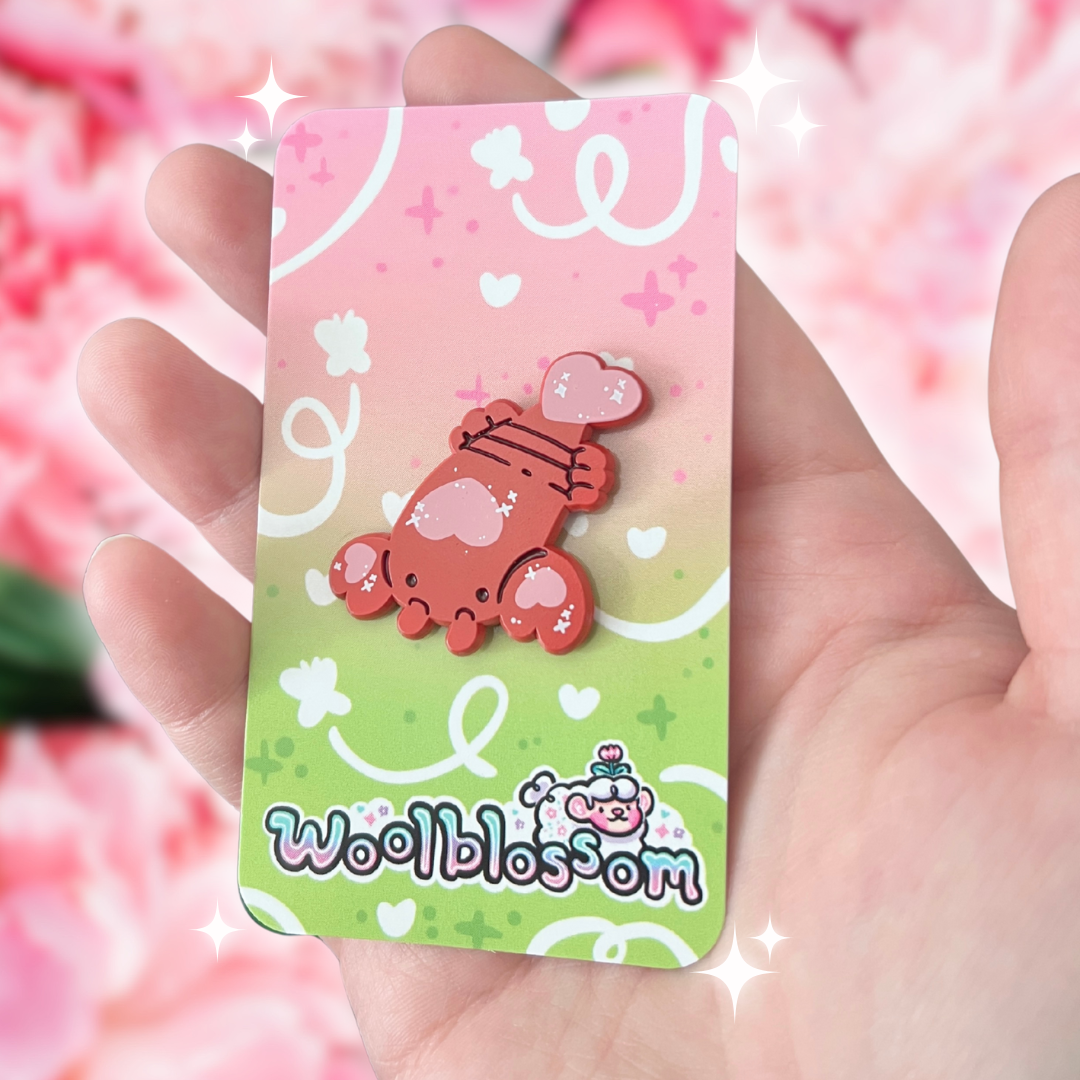 This is a soft enamel pin of Ruby the red love-ster! For those who love pins or don't have room for the plushie, this is the perfect delightful item :D