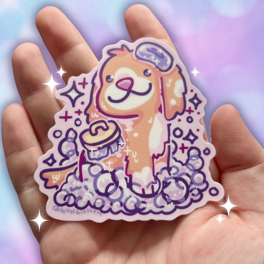 Just a simple puppy getting some bubbly scrubs! The perfect sticker to slap on (almost) anything in your bathroom :D