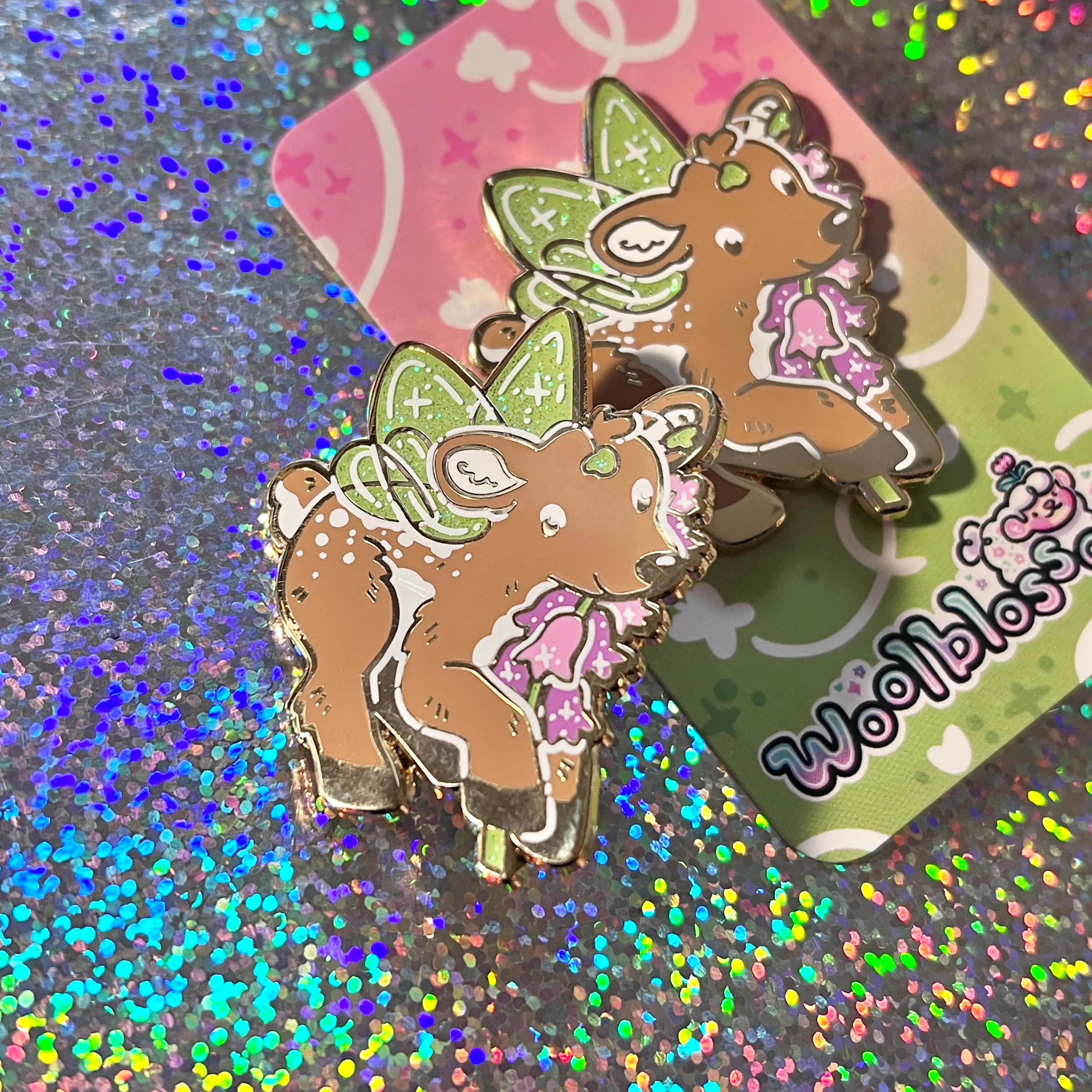 This glitter enamel pin features a timid fairy deer holding her favorite flower- the heather flower! A magical and sparkly combo, this is the perfect pin for anyone who loves fairies, deer, or unappreciated flowers. Put it on your bag for spring, or anywhere else for a pop of shimmer!